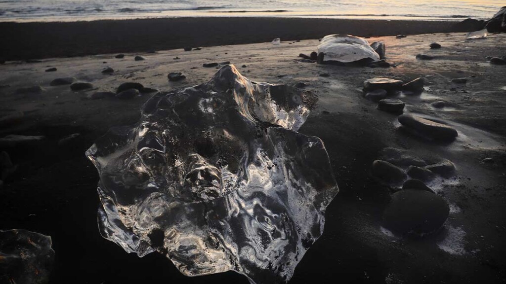 As the sun dips below the horizon, casting a golden hue over the glacial landscape, Diamond Beach truly comes alive. The icebergs sparkle like diamonds in the fading light, creating a magical ambiance that lingers long after the last rays of sunlight have disappeared.